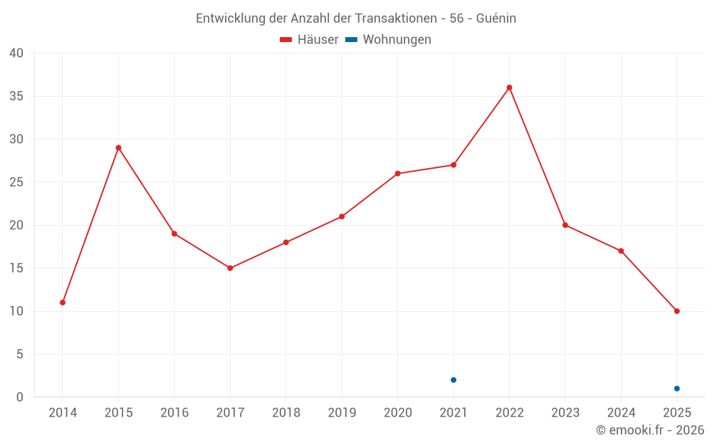 Karte der Immobilienpreise in der Gemeinde Guénin, wählen Sie einen Abschnitt, um Transaktionen nach Parzelle zu sehen.
