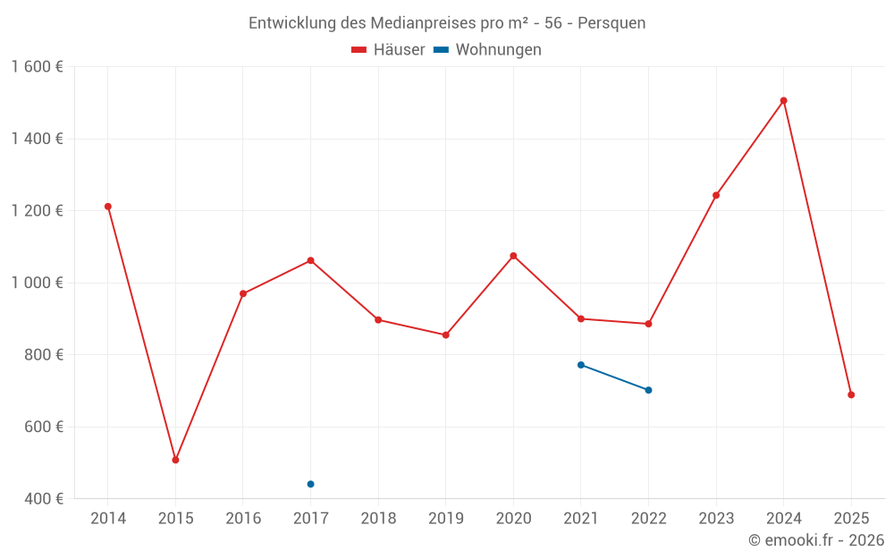 Werte der Preispercentile pro m² über die für den geschätzten Preis jeder Art von Immobilie verwendeten Zeiträume.