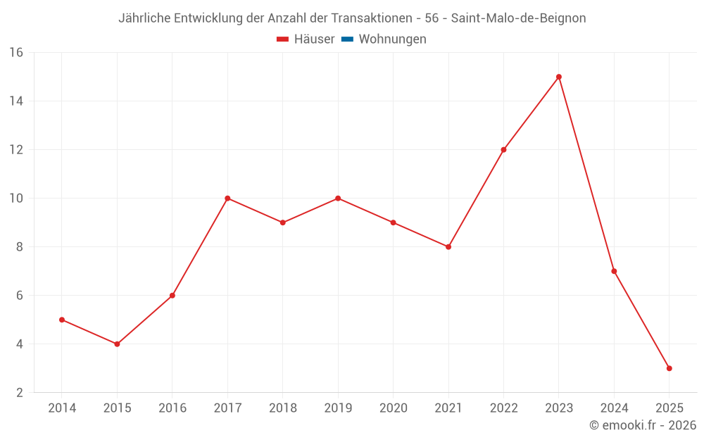 Der Durchschnittspreis auf den 22 Hausgeschäften der letzten 24 Monate in der Gemeinde Saint-Malo-de-Beignon betrug 1 990 € pro Quadratmeter für einen mittleren Immobilienwert von 164 000 €. Über diesen Zeitraum hinweg lagen 60% der Transaktionen zwischen 1 585 und 2 476 € pro Quadratmeter (vom 2. bis zum 8. Dezil).