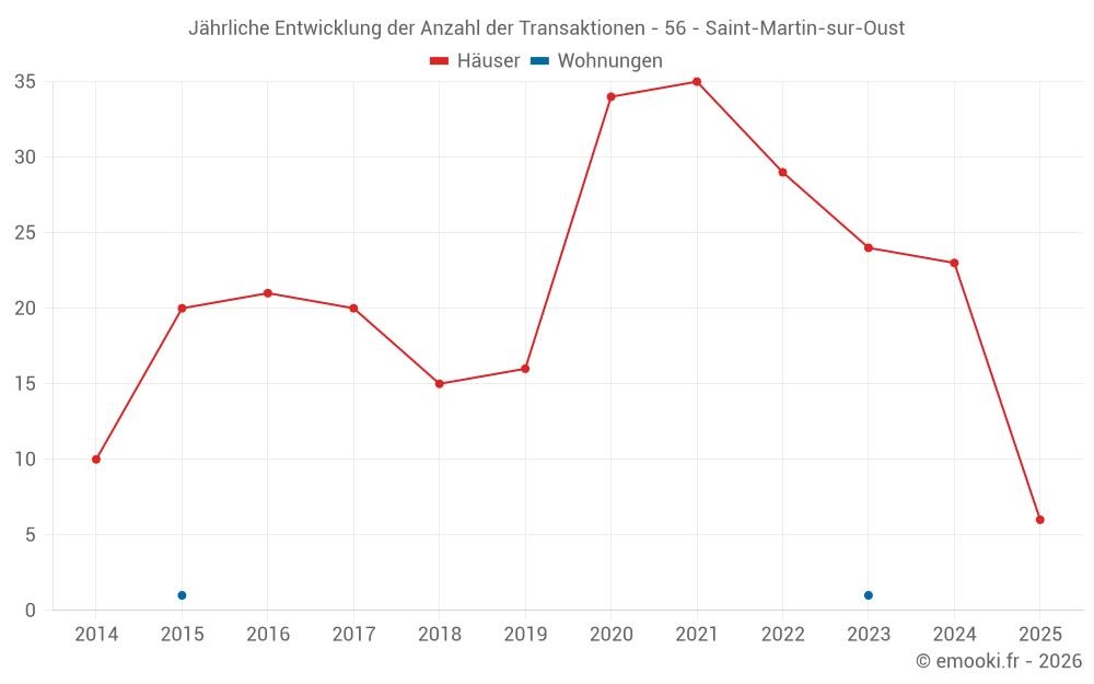 Der Durchschnittspreis auf den 18 Hausgeschäften der letzten 12 Monate in der Gemeinde Saint-Martin-sur-Oust betrug 1 414 € pro Quadratmeter für einen mittleren Immobilienwert von 99 495 €. Über diesen Zeitraum hinweg lagen 60% der Transaktionen zwischen 857 und 1 772 € pro Quadratmeter (vom 2. bis zum 8. Dezil).