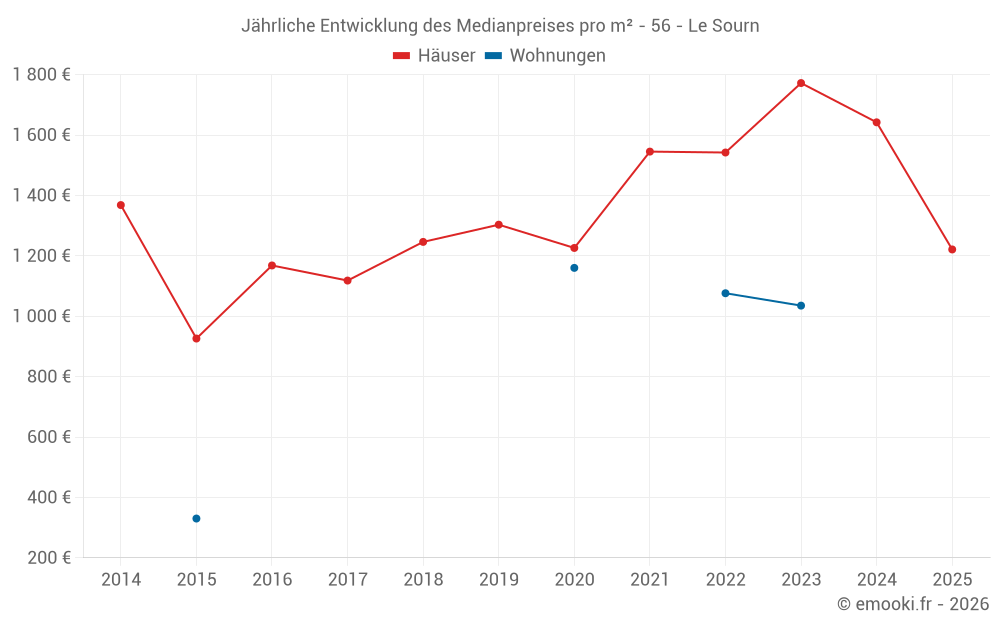 Was ist der Preis pro m2 für Häuser in Le Sourn?