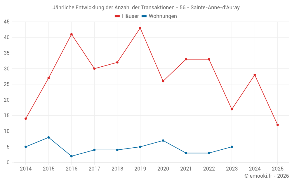 Der Durchschnittspreis auf den 30 Hausgeschäften der letzten 12 Monate in der Gemeinde Sainte-Anne-d'Auray betrug 2 908 € pro Quadratmeter für einen mittleren Immobilienwert von 349 375 €. Über diesen Zeitraum hinweg lagen 60% der Transaktionen zwischen 2 362 und 3 847 € pro Quadratmeter (vom 2. bis zum 8. Dezil).