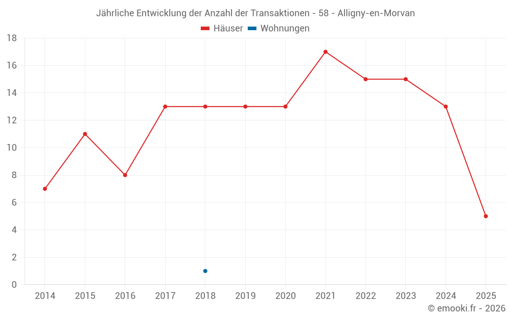 Der Durchschnittspreis auf den 27 Hausgeschäften der letzten 24 Monate in der Gemeinde Alligny-en-Morvan betrug 1 185 € pro Quadratmeter für einen mittleren Immobilienwert von 97 500 €. Über diesen Zeitraum hinweg lagen 60% der Transaktionen zwischen 569 und 2 168 € pro Quadratmeter (vom 2. bis zum 8. Dezil).
