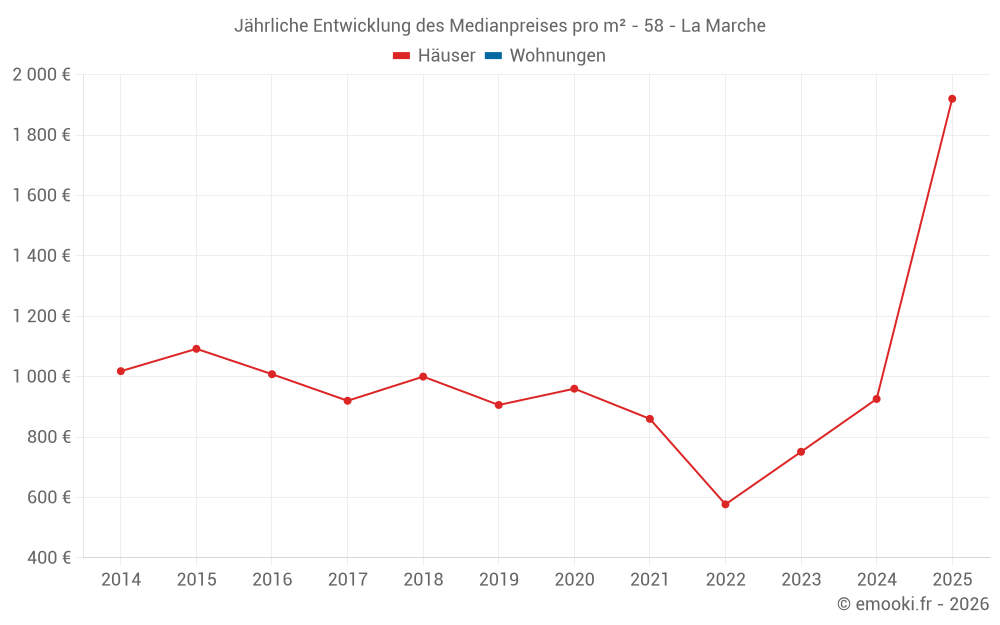 Der Durchschnittspreis auf den 19 Hausgeschäften der letzten 24 Monate in der Gemeinde La Marche betrug 960 € pro Quadratmeter für einen mittleren Immobilienwert von 100 000 €. Über diesen Zeitraum hinweg lagen 60% der Transaktionen zwischen 605 und 1 829 € pro Quadratmeter (vom 2. bis zum 8. Dezil).