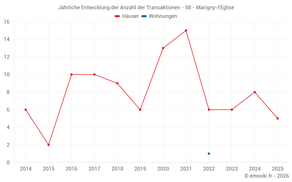Der Durchschnittspreis auf den 17 Hausgeschäften der letzten 24 Monate in der Gemeinde Marigny-l'Église betrug 1 139 € pro Quadratmeter für einen mittleren Immobilienwert von 82 000 €. Über diesen Zeitraum hinweg lagen 60% der Transaktionen zwischen 352 und 1 632 € pro Quadratmeter (vom 2. bis zum 8. Dezil).