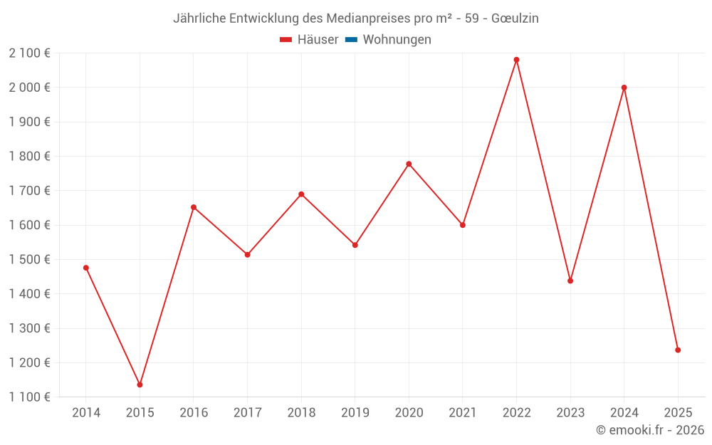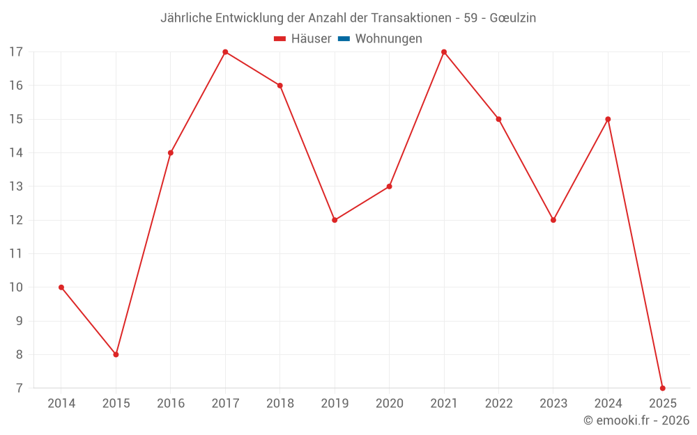 Der Durchschnittspreis auf den 16 Hausgeschäften der letzten 12 Monate in der Gemeinde Gœulzin betrug 2 000 € pro Quadratmeter für einen mittleren Immobilienwert von 239 675 €. Über diesen Zeitraum hinweg lagen 60% der Transaktionen zwischen 1 237 und 2 258 € pro Quadratmeter (vom 2. bis zum 8. Dezil).