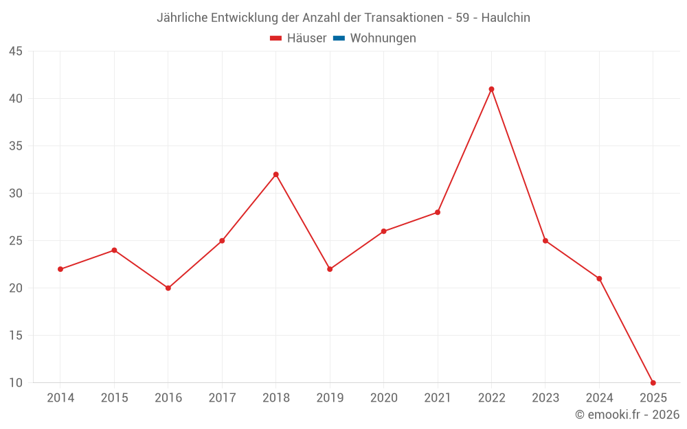 Der Durchschnittspreis auf den 20 Hausgeschäften der letzten 12 Monate in der Gemeinde Haulchin betrug 1 691 € pro Quadratmeter für einen mittleren Immobilienwert von 143 750 €. Über diesen Zeitraum hinweg lagen 60% der Transaktionen zwischen 1 149 und 2 010 € pro Quadratmeter (vom 2. bis zum 8. Dezil).