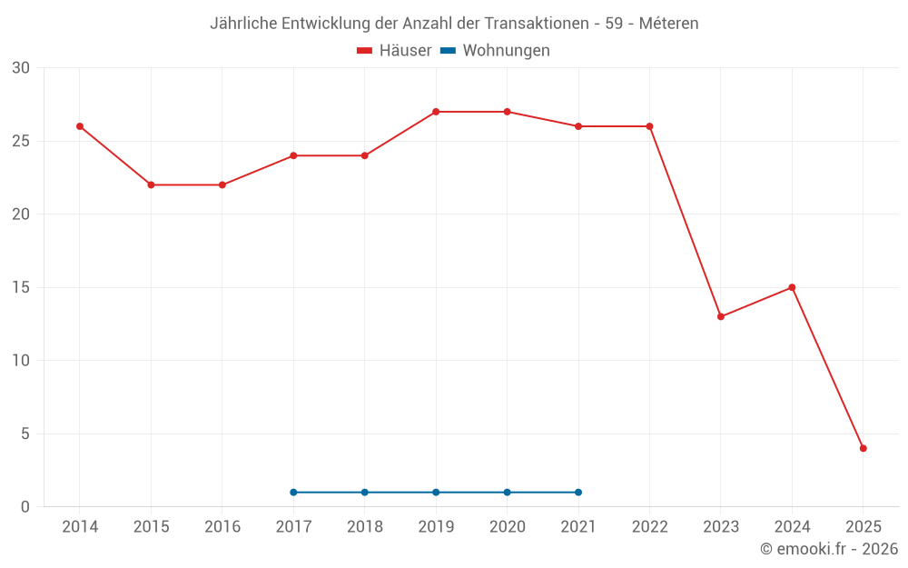 Der Durchschnittspreis auf den 25 Hausgeschäften der letzten 24 Monate in der Gemeinde Méteren betrug 2 190 € pro Quadratmeter für einen mittleren Immobilienwert von 219 500 €. Über diesen Zeitraum hinweg lagen 60% der Transaktionen zwischen 1 540 und 2 754 € pro Quadratmeter (vom 2. bis zum 8. Dezil).