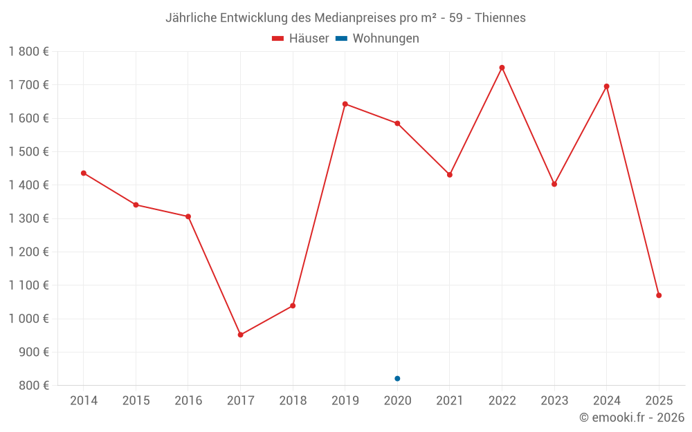 Karte der Immobilienpreise in der Gemeinde Thiennes, wählen Sie einen Abschnitt, um Transaktionen nach Parzelle zu sehen.