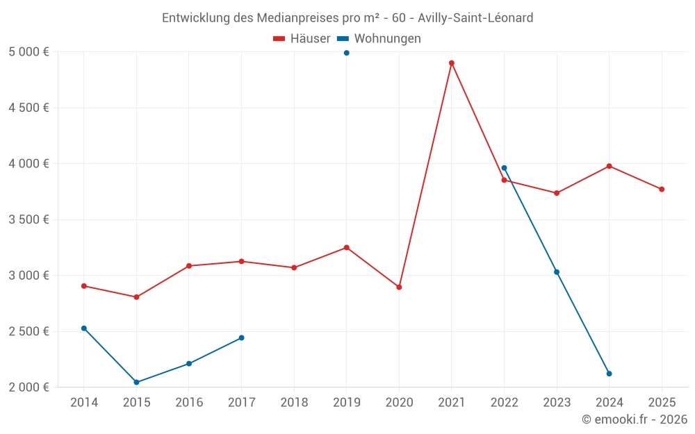 Karte der Immobilienpreise in der Gemeinde Avilly-Saint-Léonard, wählen Sie einen Abschnitt, um Transaktionen nach Parzelle zu sehen.