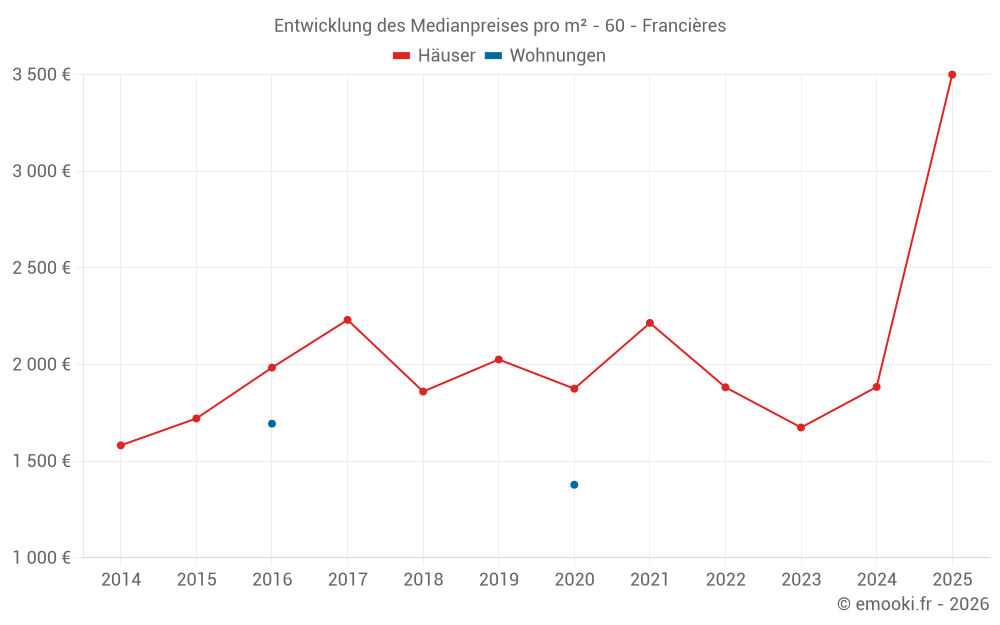 Karte der Immobilienpreise in der Gemeinde Francières, wählen Sie einen Abschnitt, um Transaktionen nach Parzelle zu sehen.