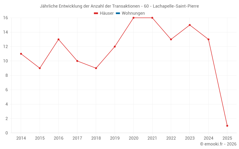 Der Durchschnittspreis auf den 22 Hausgeschäften der letzten 24 Monate in der Gemeinde Lachapelle-Saint-Pierre betrug 2 052 € pro Quadratmeter für einen mittleren Immobilienwert von 234 950 €. Über diesen Zeitraum hinweg lagen 60% der Transaktionen zwischen 1 639 und 2 764 € pro Quadratmeter (vom 2. bis zum 8. Dezil).