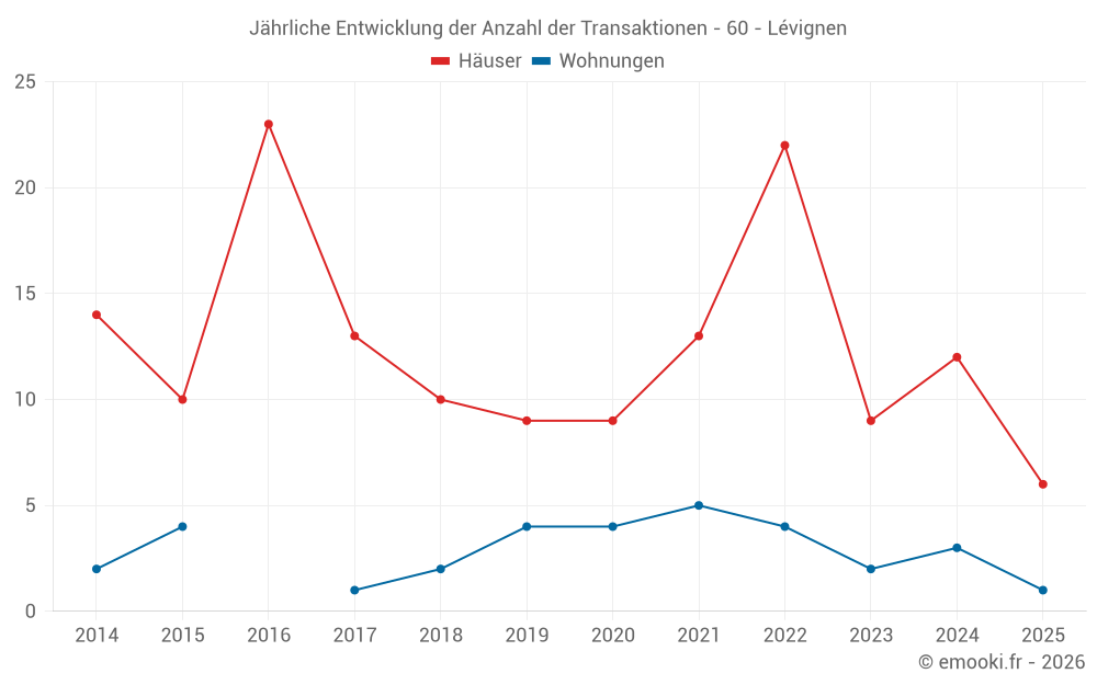 Der Durchschnittspreis auf den 22 Hausgeschäften der letzten 24 Monate in der Gemeinde Lévignen betrug 2 726 € pro Quadratmeter für einen mittleren Immobilienwert von 237 450 €. Über diesen Zeitraum hinweg lagen 60% der Transaktionen zwischen 1 831 und 2 931 € pro Quadratmeter (vom 2. bis zum 8. Dezil).