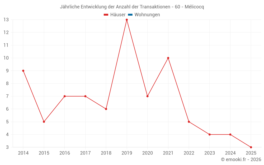 Karte der Immobilienpreise in der Gemeinde Mélicocq, wählen Sie einen Abschnitt, um Transaktionen nach Parzelle zu sehen.