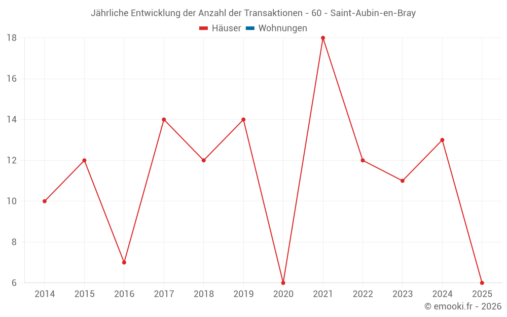 Der Durchschnittspreis auf den 21 Hausgeschäften der letzten 24 Monate in der Gemeinde Saint-Aubin-en-Bray betrug 1 779 € pro Quadratmeter für einen mittleren Immobilienwert von 170 000 €. Über diesen Zeitraum hinweg lagen 60% der Transaktionen zwischen 1 478 und 2 034 € pro Quadratmeter (vom 2. bis zum 8. Dezil).