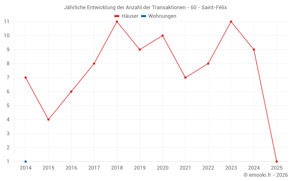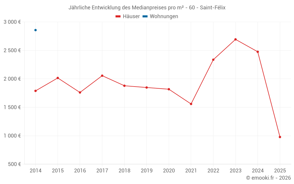 Der Durchschnittspreis auf den 16 Hausgeschäften der letzten 24 Monate in der Gemeinde Saint-Félix betrug 2 524 € pro Quadratmeter für einen mittleren Immobilienwert von 231 000 €. Über diesen Zeitraum hinweg lagen 60% der Transaktionen zwischen 1 899 und 2 700 € pro Quadratmeter (vom 2. bis zum 8. Dezil).
