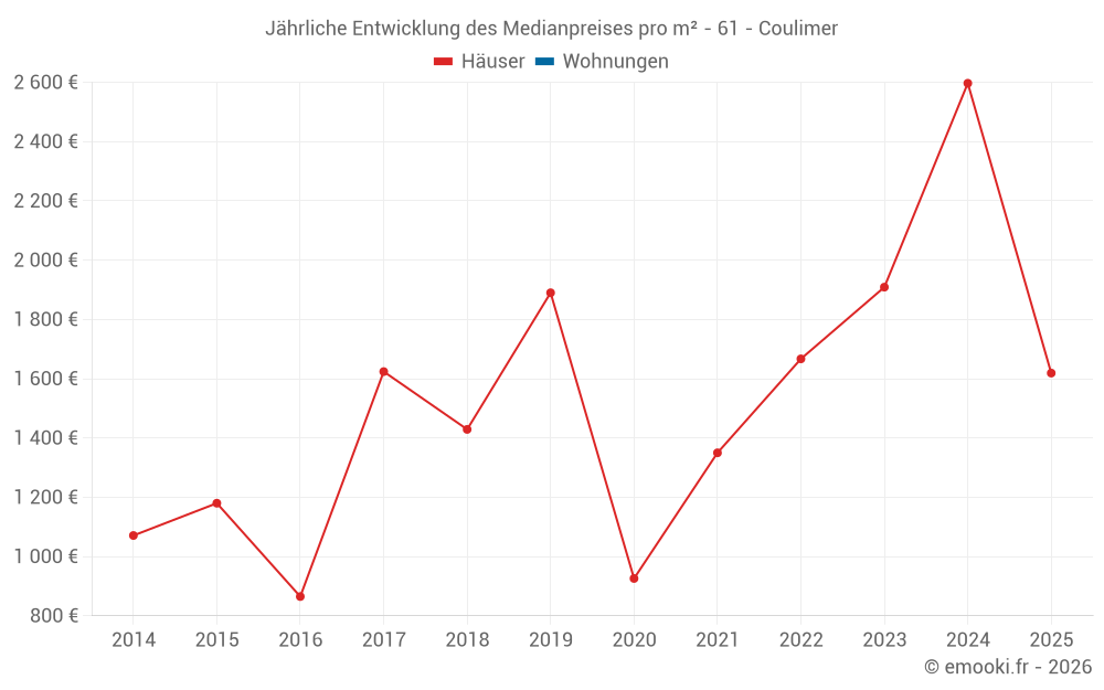 Der Preis pro m² von Häusern ist seit 6 Jahren um 14% gesunken, aber er ist in 9 Jahren um 87% gestiegen.