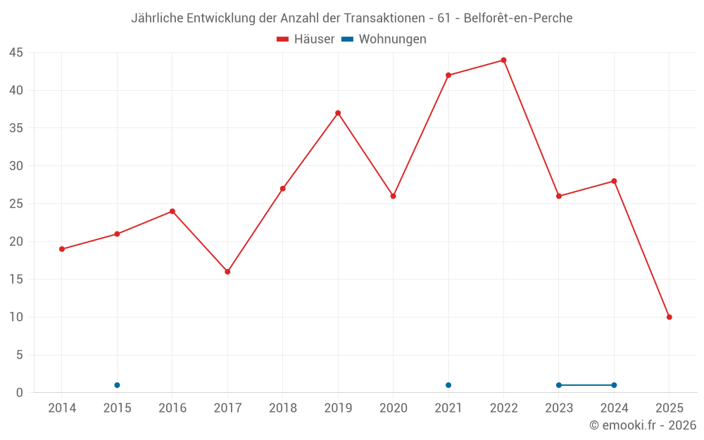Der Durchschnittspreis auf den 28 Hausgeschäften der letzten 12 Monate in der Gemeinde Belforêt-en-Perche betrug 1 480 € pro Quadratmeter für einen mittleren Immobilienwert von 123 500 €. Über diesen Zeitraum hinweg lagen 60% der Transaktionen zwischen 956 und 2 005 € pro Quadratmeter (vom 2. bis zum 8. Dezil).