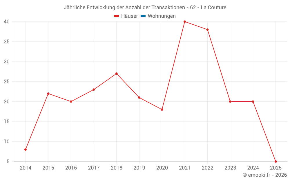 Der Durchschnittspreis auf den 32 Hausgeschäften der letzten 24 Monate in der Gemeinde La Couture betrug 1 918 € pro Quadratmeter für einen mittleren Immobilienwert von 207 500 €. Über diesen Zeitraum hinweg lagen 60% der Transaktionen zwischen 1 439 und 2 637 € pro Quadratmeter (vom 2. bis zum 8. Dezil).