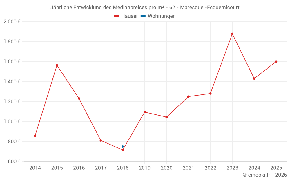 Der Preis pro m² von Häusern ist seit 2 Jahren um 15% gesunken, aber er ist in 7 Jahren um 124% gestiegen.