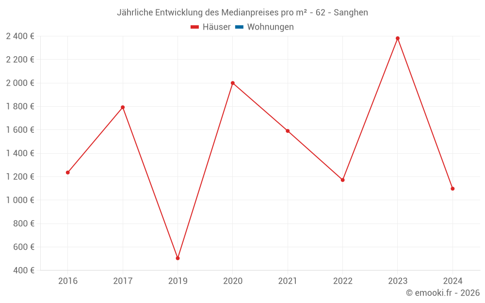 Entwicklung des Medianpreises pro m² von Häusern