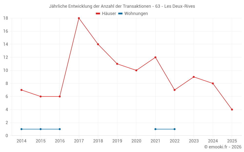 Der Durchschnittspreis auf den 18 Hausgeschäften der letzten 24 Monate in der Gemeinde Les Deux-Rives betrug 2 033 € pro Quadratmeter für einen mittleren Immobilienwert von 193 250 €. Über diesen Zeitraum hinweg lagen 60% der Transaktionen zwischen 1 437 und 2 362 € pro Quadratmeter (vom 2. bis zum 8. Dezil).