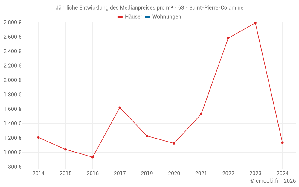 Entwicklung des Medianpreises pro m² von Häusern