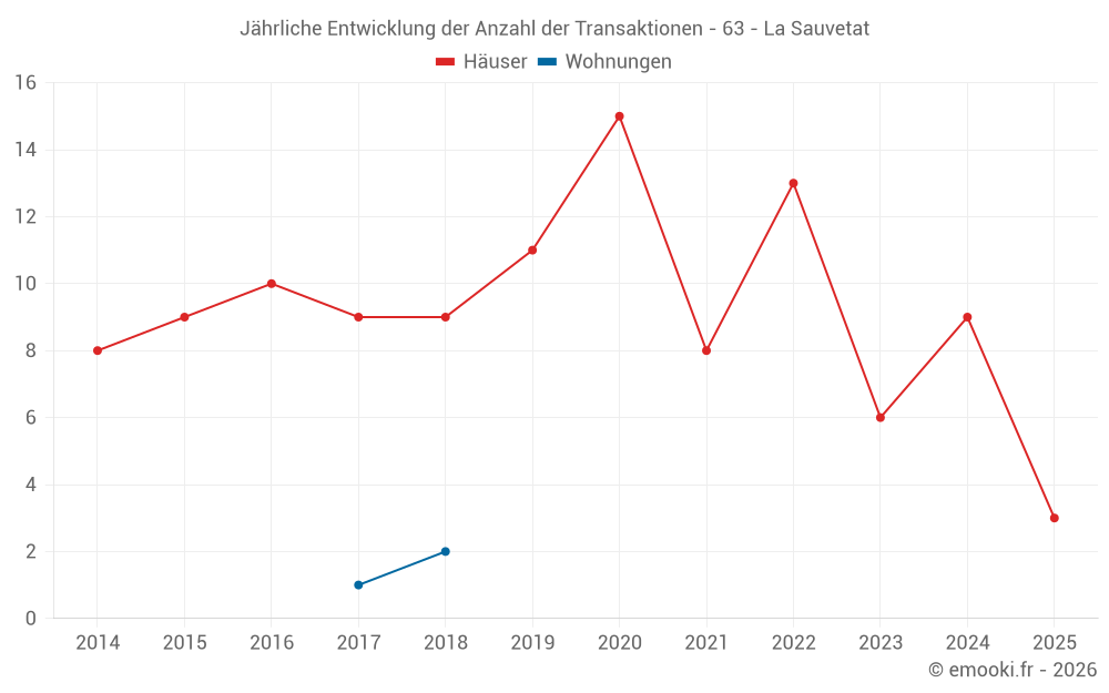 Der Durchschnittspreis auf den 15 Hausgeschäften der letzten 24 Monate in der Gemeinde La Sauvetat betrug 1 625 € pro Quadratmeter für einen mittleren Immobilienwert von 127 300 €. Über diesen Zeitraum hinweg lagen 60% der Transaktionen zwischen 1 404 und 2 245 € pro Quadratmeter (vom 2. bis zum 8. Dezil).