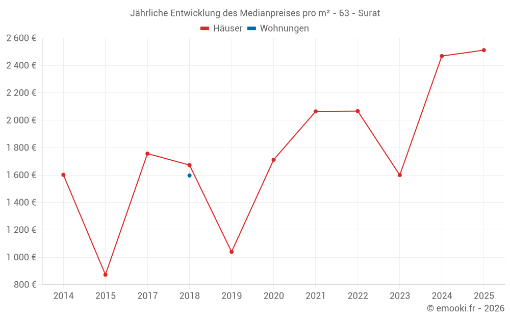 Entwicklung des Medianpreises pro m² von Wohnungen