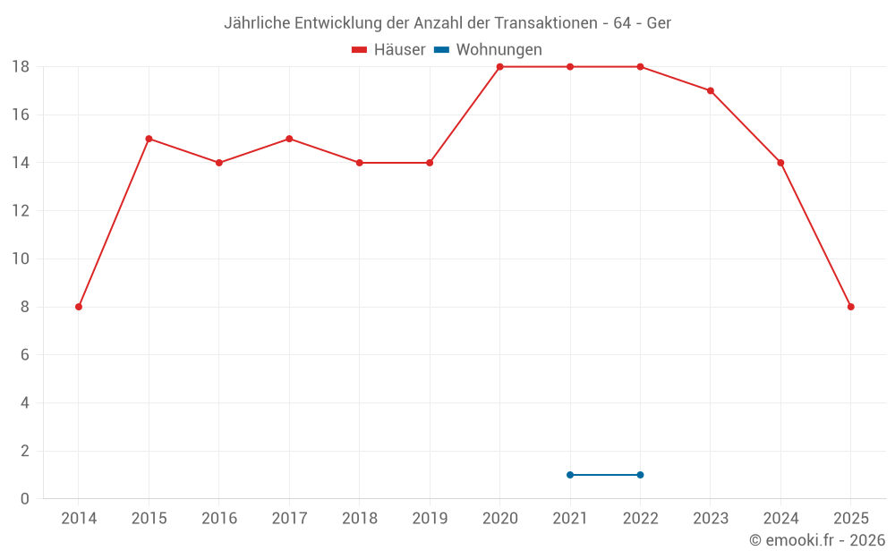Der Durchschnittspreis auf den 31 Hausgeschäften der letzten 24 Monate in der Gemeinde Ger betrug 2 070 € pro Quadratmeter für einen mittleren Immobilienwert von 251 878 €. Über diesen Zeitraum hinweg lagen 60% der Transaktionen zwischen 1 341 und 2 702 € pro Quadratmeter (vom 2. bis zum 8. Dezil).
