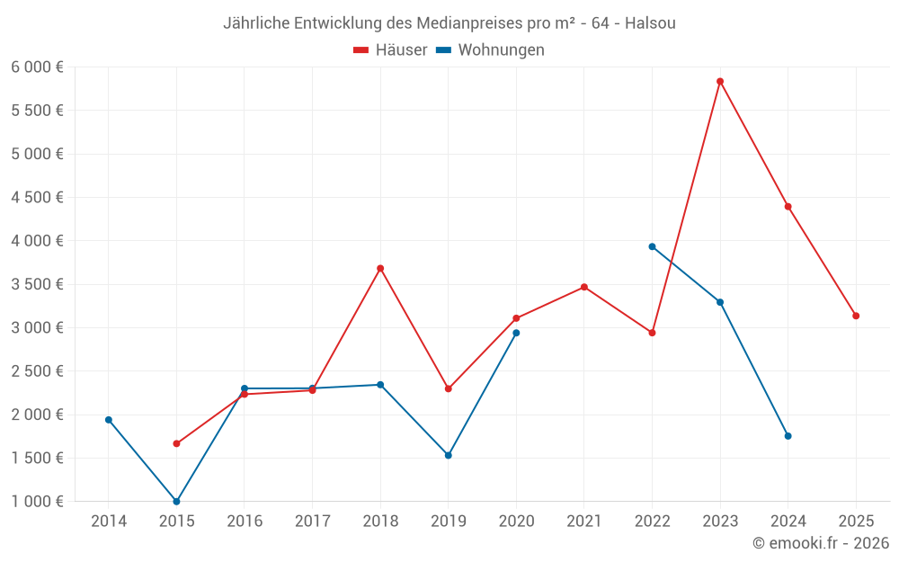 Karte der Immobilienpreise in der Gemeinde Halsou, wählen Sie einen Abschnitt, um Transaktionen nach Parzelle zu sehen.
