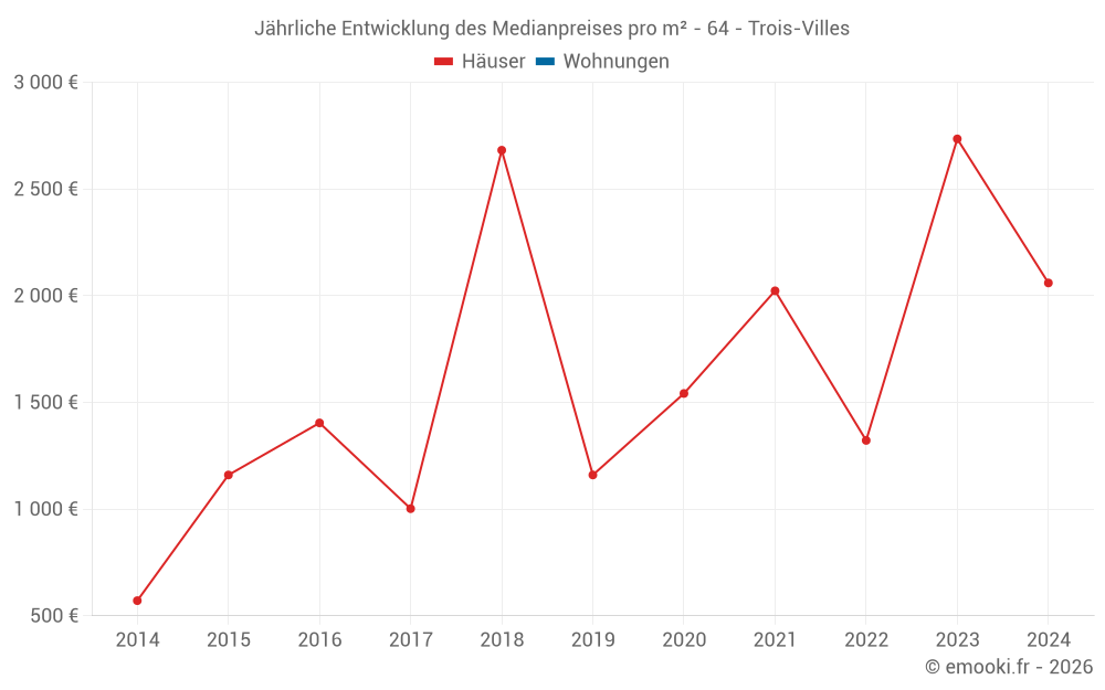 Entwicklung des Medianpreises pro m² von Häusern