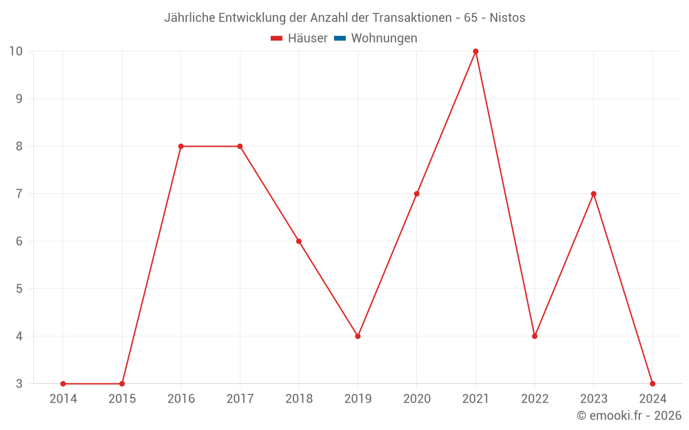 Karte der Immobilienpreise in der Gemeinde Nistos, wählen Sie einen Abschnitt, um Transaktionen nach Parzelle zu sehen.
