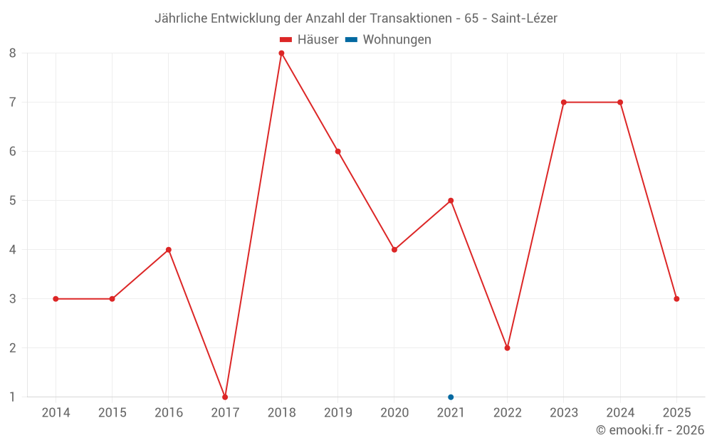 Der Durchschnittspreis auf den 14 Hausgeschäften der letzten 24 Monate in der Gemeinde Saint-Lézer betrug 1 736 € pro Quadratmeter für einen mittleren Immobilienwert von 200 175 €. Über diesen Zeitraum hinweg lagen 60% der Transaktionen zwischen 1 155 und 2 039 € pro Quadratmeter (vom 2. bis zum 8. Dezil).