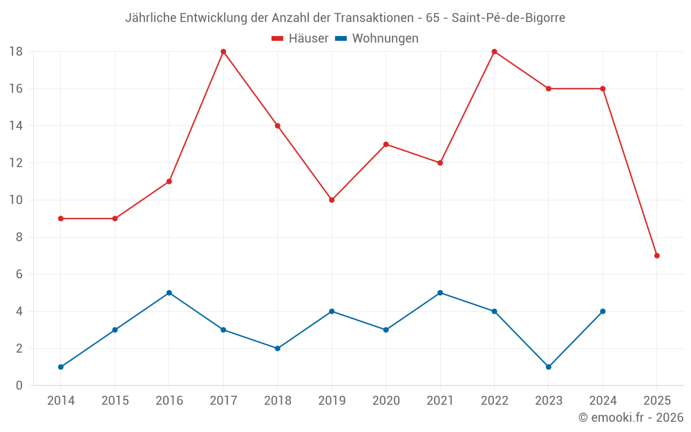 Der Durchschnittspreis auf den 16 Hausgeschäften der letzten 12 Monate in der Gemeinde Saint-Pé-de-Bigorre betrug 1 159 € pro Quadratmeter für einen mittleren Immobilienwert von 122 825 €. Über diesen Zeitraum hinweg lagen 60% der Transaktionen zwischen 821 und 1 689 € pro Quadratmeter (vom 2. bis zum 8. Dezil).