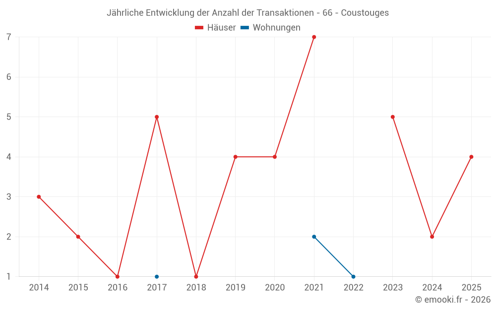 Der Preis pro m² von Häusern ist seit 2 Jahren um 29% gesunken, aber er ist in 6 Jahren um 26% gestiegen.