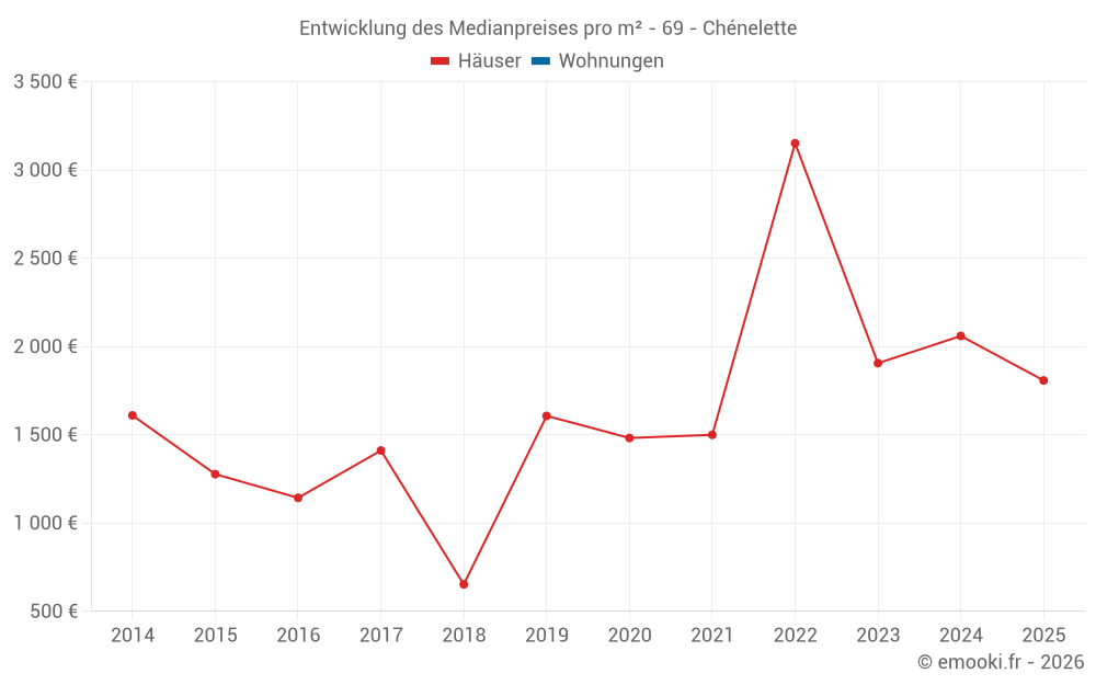 Karte der Immobilienpreise in der Gemeinde Chénelette, wählen Sie einen Abschnitt, um Transaktionen nach Parzelle zu sehen.