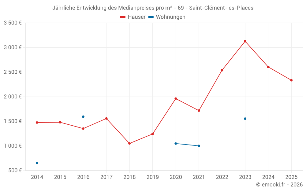 Entwicklung des Medianpreises pro m² von Wohnungen