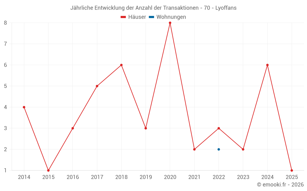 Karte der Immobilienpreise in der Gemeinde Lyoffans, wählen Sie einen Abschnitt, um Transaktionen nach Parzelle zu sehen.