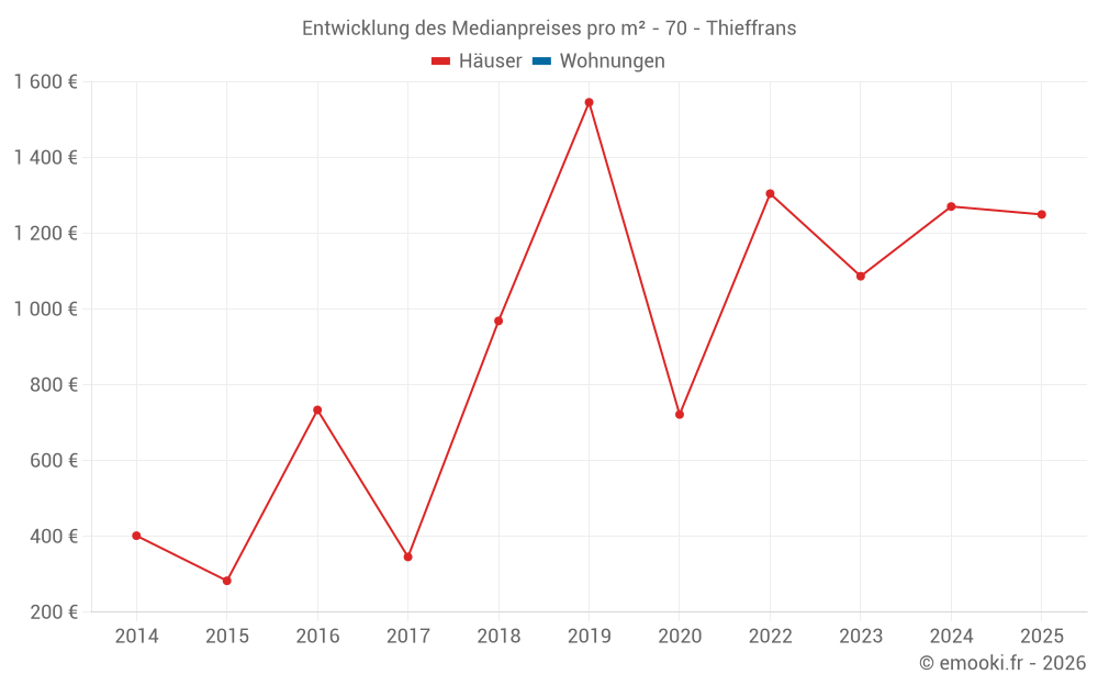 Karte der Immobilienpreise in der Gemeinde Thieffrans, wählen Sie einen Abschnitt, um Transaktionen nach Parzelle zu sehen.