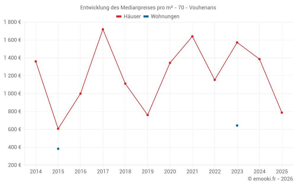 Karte der Immobilienpreise in der Gemeinde Vouhenans, wählen Sie einen Abschnitt, um Transaktionen nach Parzelle zu sehen.