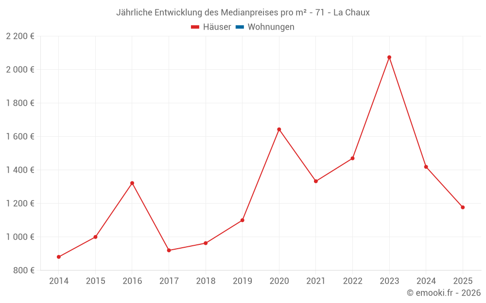 Entwicklung des Medianpreises pro m² von Häusern