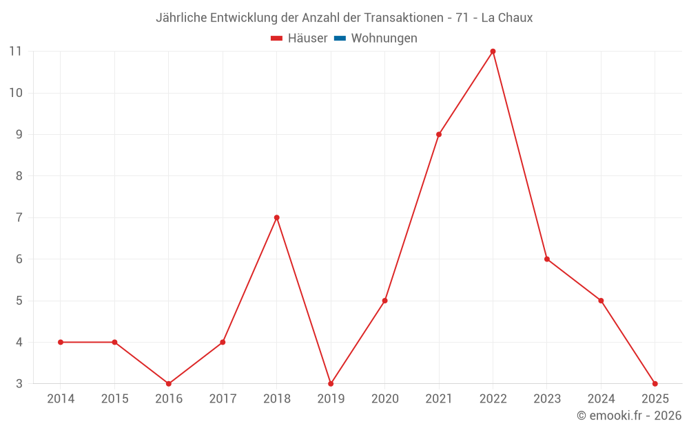 Karte der Immobilienpreise in der Gemeinde La Chaux, wählen Sie einen Abschnitt, um Transaktionen nach Parzelle zu sehen.