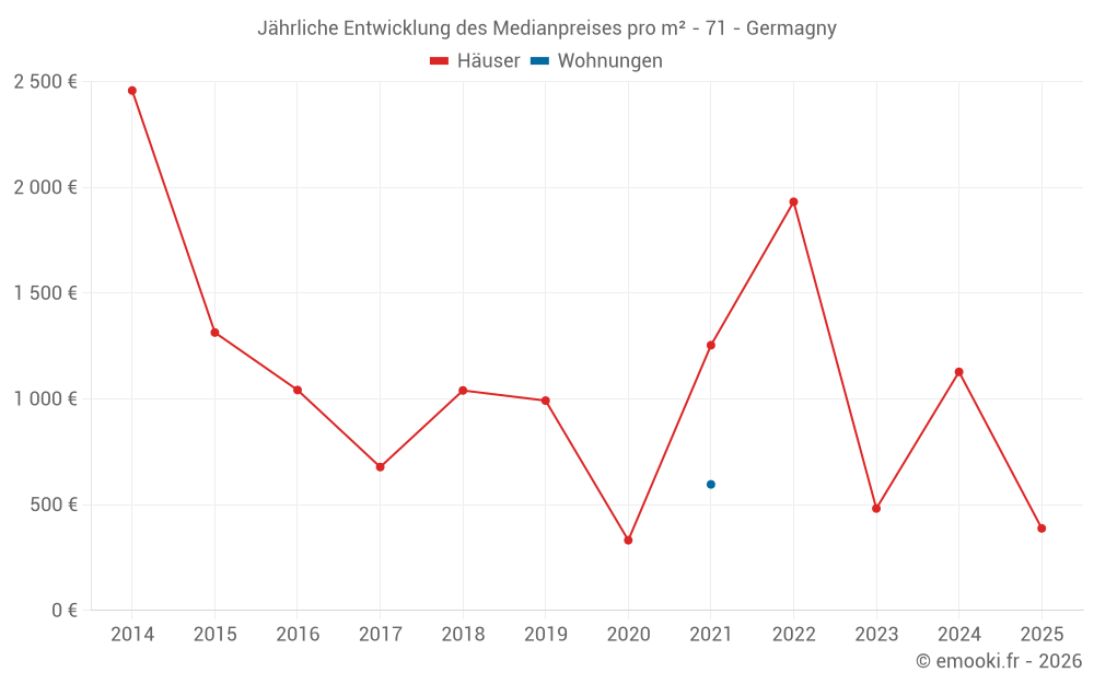 Entwicklung des Medianpreises pro m² von Häusern