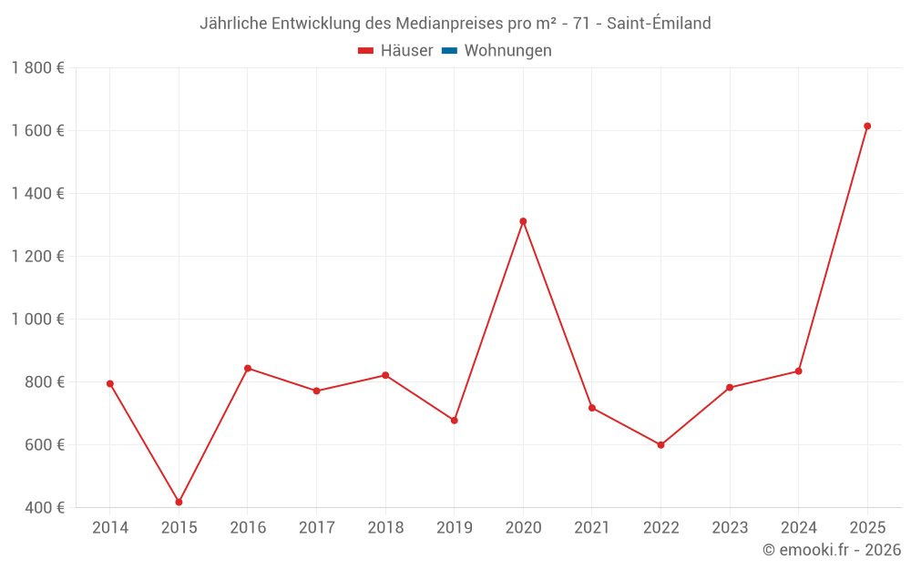Entwicklung des Medianpreises pro m² von Häusern