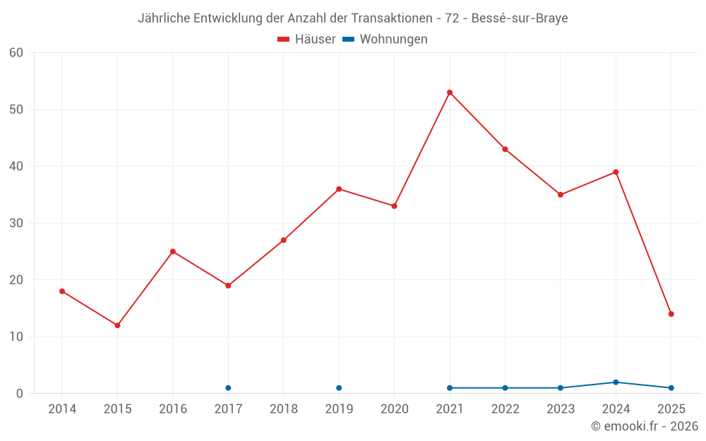 Der Durchschnittspreis auf den 29 Hausgeschäften der letzten 12 Monate in der Gemeinde Bessé-sur-Braye betrug 833 € pro Quadratmeter für einen mittleren Immobilienwert von 78 000 €. Über diesen Zeitraum hinweg lagen 60% der Transaktionen zwischen 557 und 1 355 € pro Quadratmeter (vom 2. bis zum 8. Dezil).