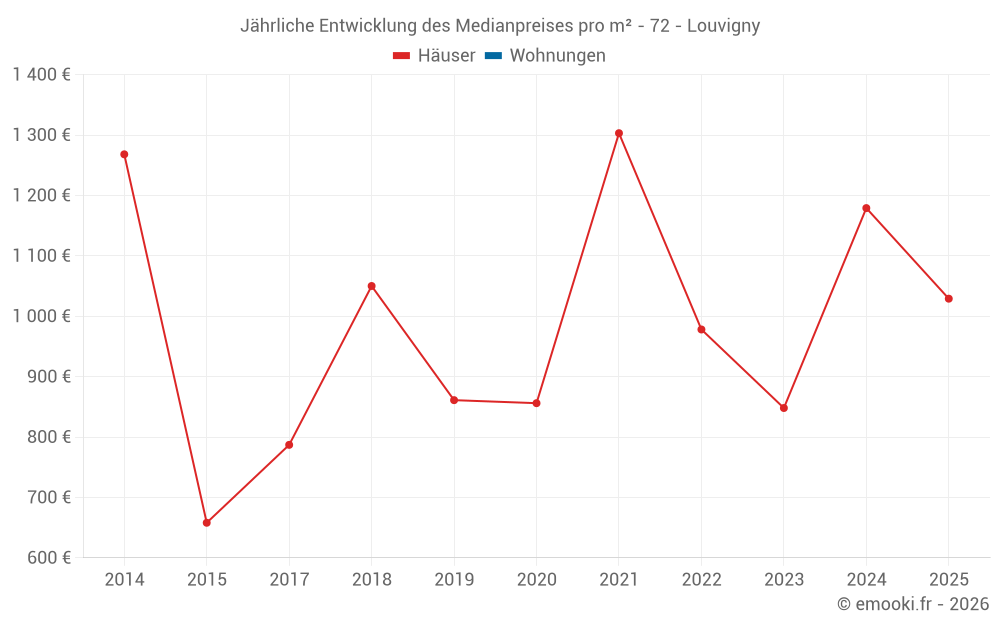 Entwicklung des Medianpreises pro m² von Häusern