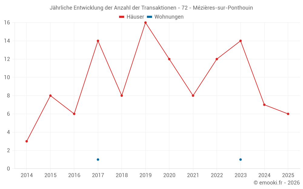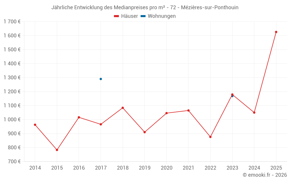 Der Durchschnittspreis auf den 19 Hausgeschäften der letzten 24 Monate in der Gemeinde Mézières-sur-Ponthouin betrug 1 429 € pro Quadratmeter für einen mittleren Immobilienwert von 120 000 €. Über diesen Zeitraum hinweg lagen 60% der Transaktionen zwischen 877 und 1 740 € pro Quadratmeter (vom 2. bis zum 8. Dezil).