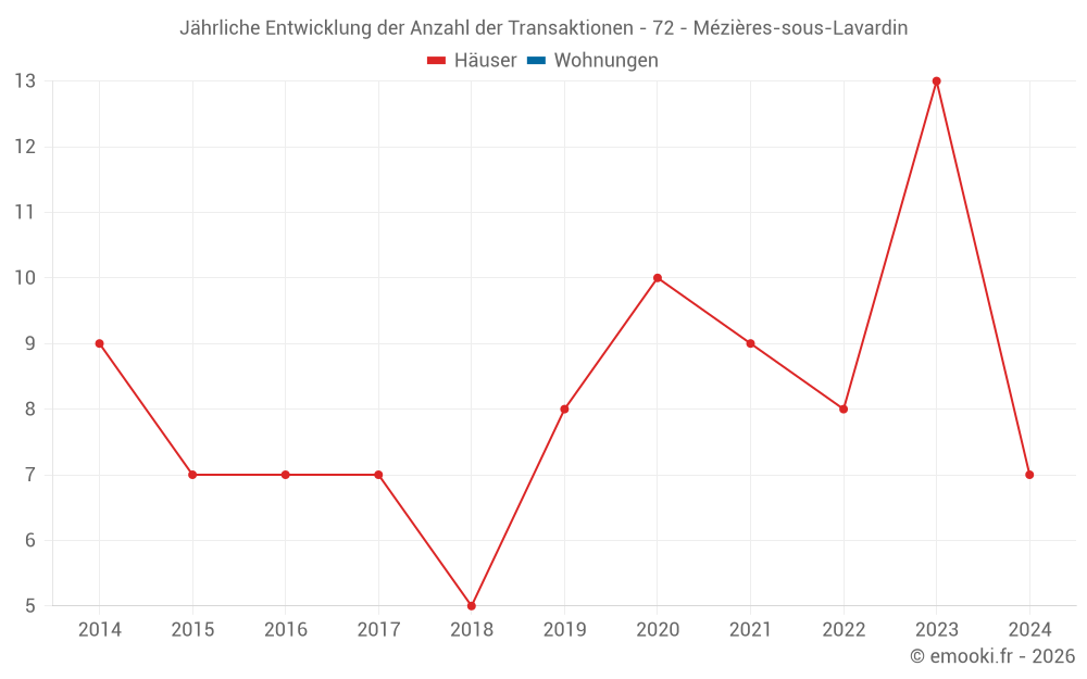 Der Durchschnittspreis auf den 14 Hausgeschäften der letzten 24 Monate in der Gemeinde Mézières-sous-Lavardin betrug 968 € pro Quadratmeter für einen mittleren Immobilienwert von 107 500 €. Über diesen Zeitraum hinweg lagen 60% der Transaktionen zwischen 746 und 1 335 € pro Quadratmeter (vom 2. bis zum 8. Dezil).