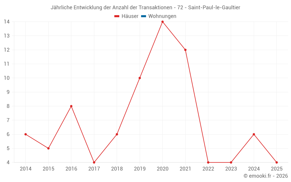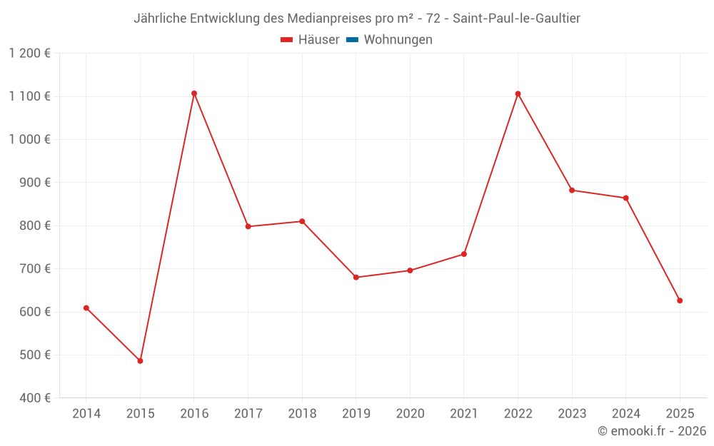Der Preis pro m² von Häusern ist seit 9 Jahren um 43% gesunken, aber er ist in 10 Jahren um 29% gestiegen.